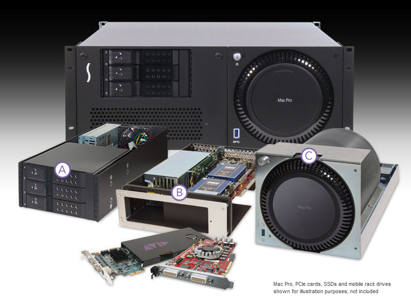 Mac Pro在工作中变得越来越不可或缺,精致的机身和强劲的功能为视音频领域的使用者提供了他们想要的一切。Mac Pro小巧的机身在提高了便携性的同时也带来了一定的问题——缺乏可拓展性;Mac Pro没有提供PCIe插槽,我们不能在其机身上安装任何PCIe板卡。而Sonnet xMac Pro Server(4U)的出现完美的解决了这些问题,并且最大限度的发挥了Mac Pro的潜力。