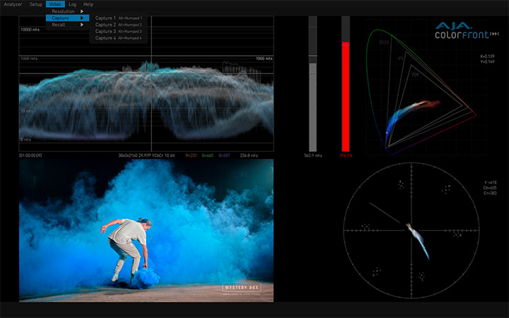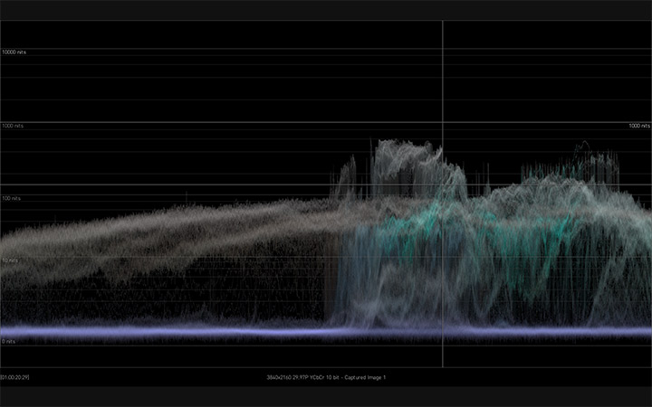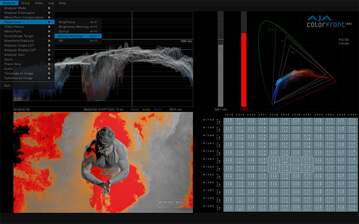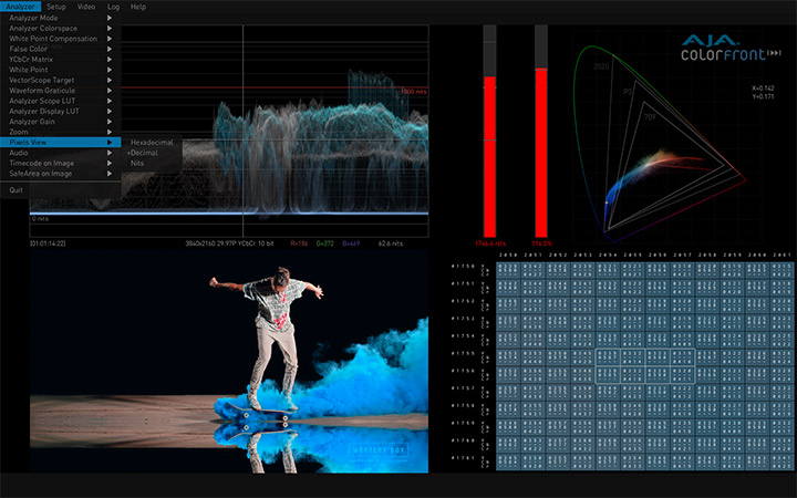 HDR Image Analyzer工具包括波形、直方图、矢量波表图监看,再加上一系列基本的图像分析功能,比如:nit亮度表、超出色域错误颜色模式、错误日志、提取像素灰度值、分屏框架、线性模式和音阶测量等。HDR Image Analyzer还内置了针对流行摄影机颜色空间的支持,包括ARRI® Canon® Panasonic® RED® 和 Sony®。