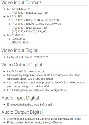 率实现监视器兼容性,因为它响应来自监视器或投影机的EDID,因此可以自动确定最佳的输出格式和缩放参数。也可以选择1对1 像素映射。HDP3提供用户可分配的2通道模拟音频监测,2至8通道