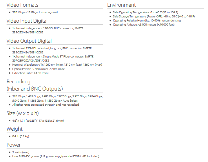 FiDO-T-12G-ST 是一款带 12G-SDI 环出的单通道 12G-SDI 转 单模 ST Fiber 发射器。FiDO-T-12G-ST 和 FiDO-R-12G-ST 可支持 12G-SDI 和 ST Fiber 之间的单通道转换。