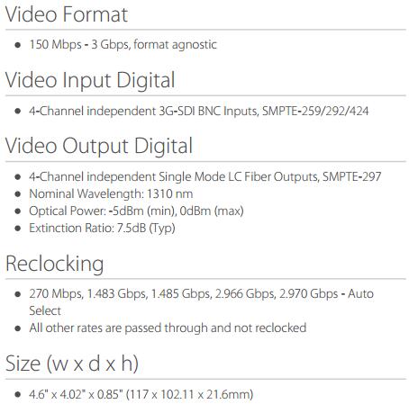 四通道 3G-SDI 到 ST 光纤