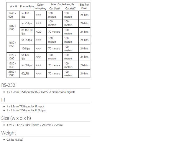 • 在长达100m的5类(或更好)线上传输未压缩的4K或HD HDMI信号