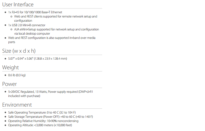 1x mini-USB用于利用AJA eMini-Setup软件进行初始网络配置