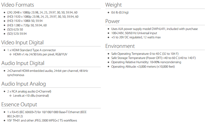 • 支持: VSF TR-01 和其他 JPEG 2000 MPEG-2 工作流程