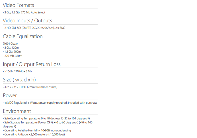 3G SMPTE 425M相互连接。3GM双向工作,可进行双1.5G到