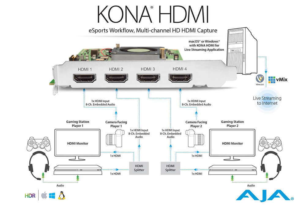 正如您期待的一样,KONA HDMI作为8-lane PCIe 2.0多通道采集卡,拥有超凡的质量和应用灵活性。可应用于电子竞技、流媒体发布,直播切换、视频直播、后期制作与发布、VJ-ing、VR等多种工作领域。单通道最高支持4K/UltraHD 60p和4通道最高支持2K/HD 60p的采集。
