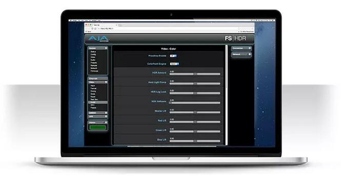 「AJA的FS-HDR在操控上比较便捷,前操作面板界面友好,设置时不需要外接电脑,操控界面选项和菜单设置也直观简单,节省许多时间。」FS-HDR无需安装操作软件,可通过前控制面板直接进行设置和控制,也可使用网络浏览器用户界面来设置及控制。在现场制作时,不但能减少设备的数量,也能避免软件无法兼容等问题。