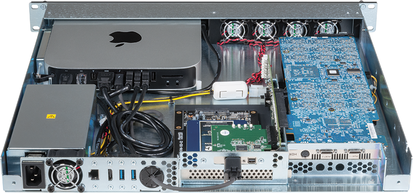 你是否考虑更换一台可上机架的电脑?你是否在寻找一款可替代老式苹果Xserve系统的产品?对于许多应用,一台拥有雷电接口的Mac mini在性能上完全可以与一台全尺寸服务器媲美。但就Mac mini自身而言,其紧凑的机身和固有外形设计也对其性能的发挥有一定的限制。最重要的是Mac mini不能提供PCIe的扩展功能。Sonnet xMac mini服务器可以完美解决这个问题,并充分发挥Mac mini的性能。作为PCIe扩展解决方案,Sonnet xMac mini采用1U机架式设计。