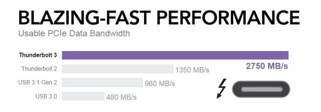 雷电3技术绝对算得上技术上的飞跃,可以轻松实现4K视频在高帧速率下进行编辑,使用笔记本电脑就可获得桌面工作站的体验效果。最高2750MB/s的可用带宽,Breakaway Box利用自身40Gbps雷电3接口,可提供较好的eGPU体验。