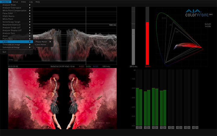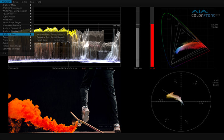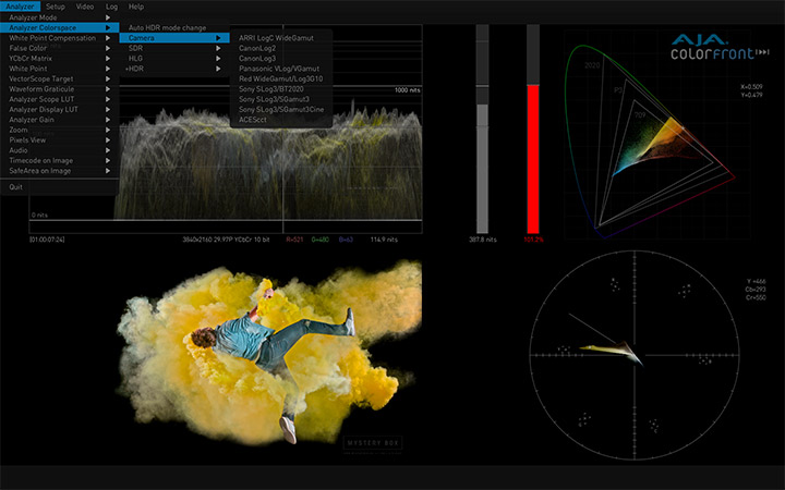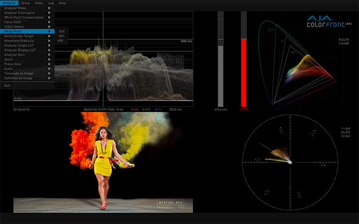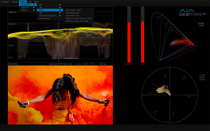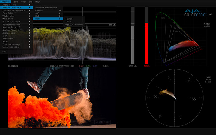 与Colorfront合作开发的AJA HDR Image Analyzer,支持从摄像机LOG格式到SDR (REC 709) PQ (ST 2084) 和 HLG大量的输入格式,提供BT.2020和传统的BT.709色彩饱和度支持。具备4x 3G-SDI 输入和输出以及DisplayPort端口的AJA硬件产品可提供完美的性能和出色的可靠性。