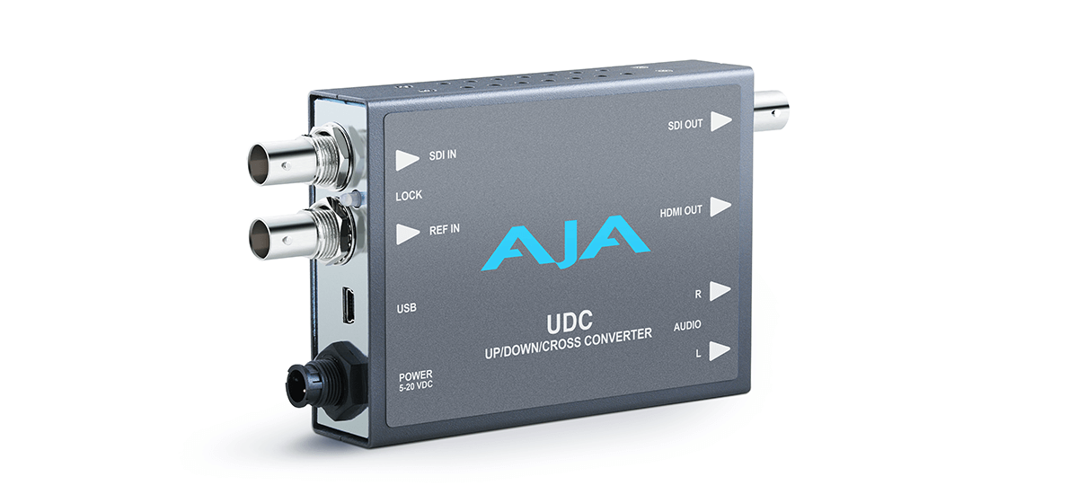 出、HDMI输出和2通道RCA式音频输出。UDC还有内置的帧同步器,并利用外部参考来给输出信号正确定时。UDC可由本地DIP开关控制,带有通过USB和AJA的微型配置