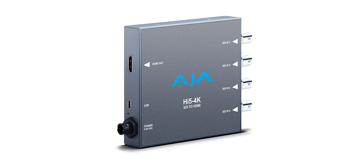 AJA的Hi5-4K小型转换器提供简单的监视连接,可从使用4个SDI输出的专业4K设备连接到有4K HDMI输入的新型显示器。Hi5-4K是非常