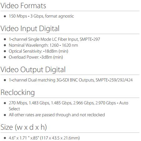 单通道 ST 光纤到 SDI 转换器,带双 SDI 输出