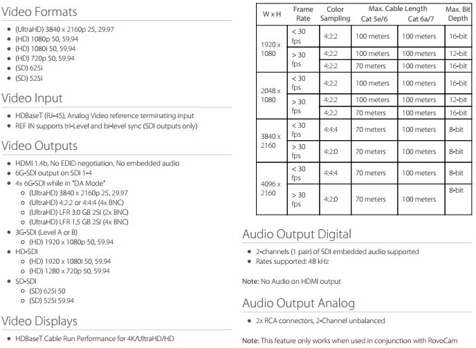 RovoRx - SDI上的HDbaseT连机器支持摄像机未压缩视频、音频传输,并可实现供电和控制,所有这