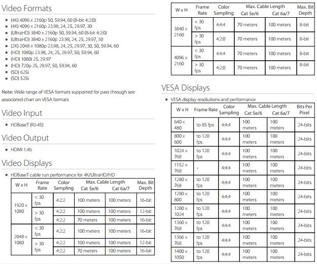 • 在长达100m的5类(或更好)线上传输未压缩的4K或HD HDMI信号