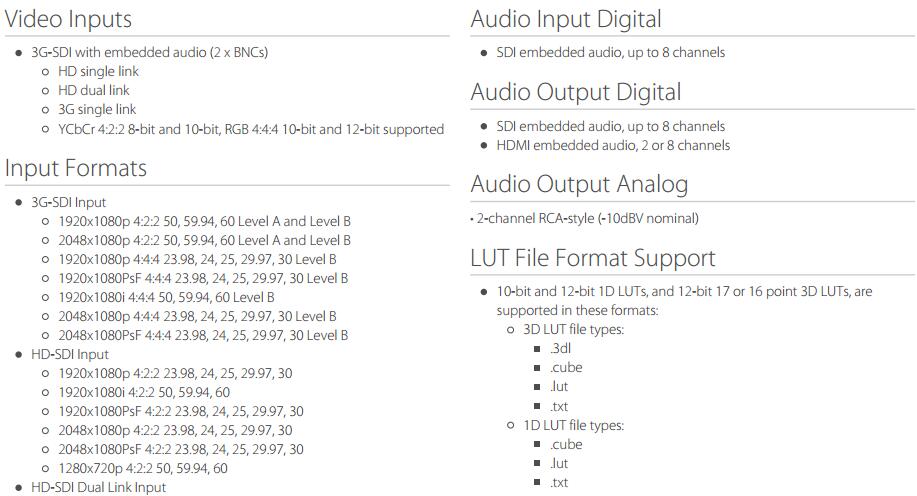个LUT-box利用HDMI和SDI监视器。嵌入式音频直通到输出,2通道RCA模拟输出可轻松监测音频,无需抽取嵌入式音频。