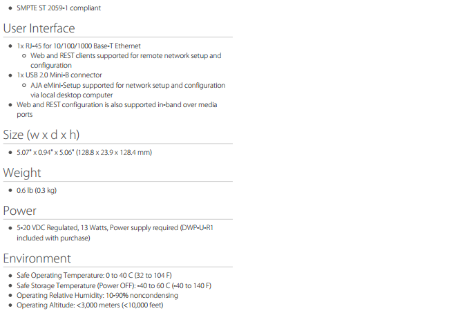 该款迷你转换器是传统基带信号与SMPTE ST 2110 之间的桥梁,适用于信号接收与发送的应用,包括工作室、转播车、新闻编辑室、企业媒体、体育馆、演唱会和其他现场活动及专业影音环境。IPT-10G2-SDI 支持无压缩 HD 视频和音频的转换和传输,可以与先前发布的 IPR-10G2-SDI 接收器一起配合使用。此款产品发布后,AJA 现在可以提供一系列 HDMI 和 SDI 的 IP 迷你转换器,用以支持SMPTE ST 2110 工作流程。该转换器与 Desktop Software v15.2完全兼容。