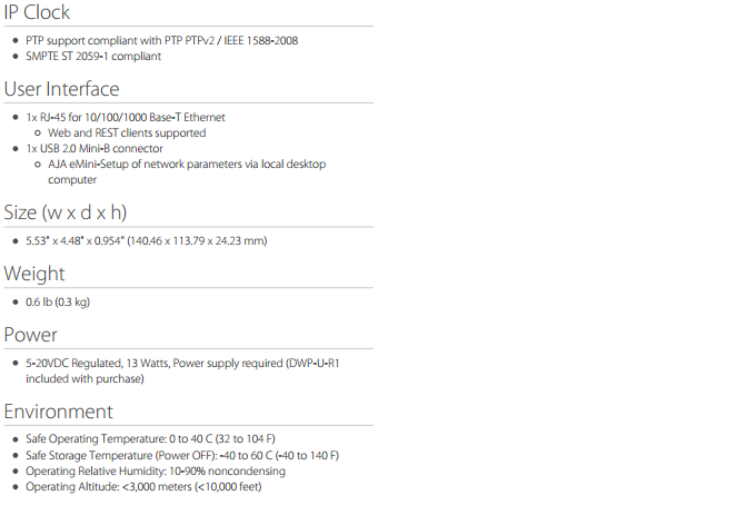 IPR-10G-HDMI从输⼊入的IP流中提取SMPTE ST 2110,并将其输出到 HDMI监看设备上。转换器器采⽤用⽆无⻛风扇式设计,外壳坚固,可适各种⼯工作 环境。