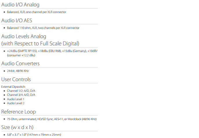 • 多达4通道的平衡模拟到AES/EBU音频