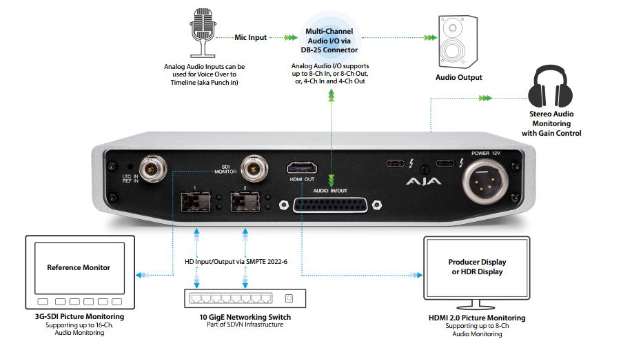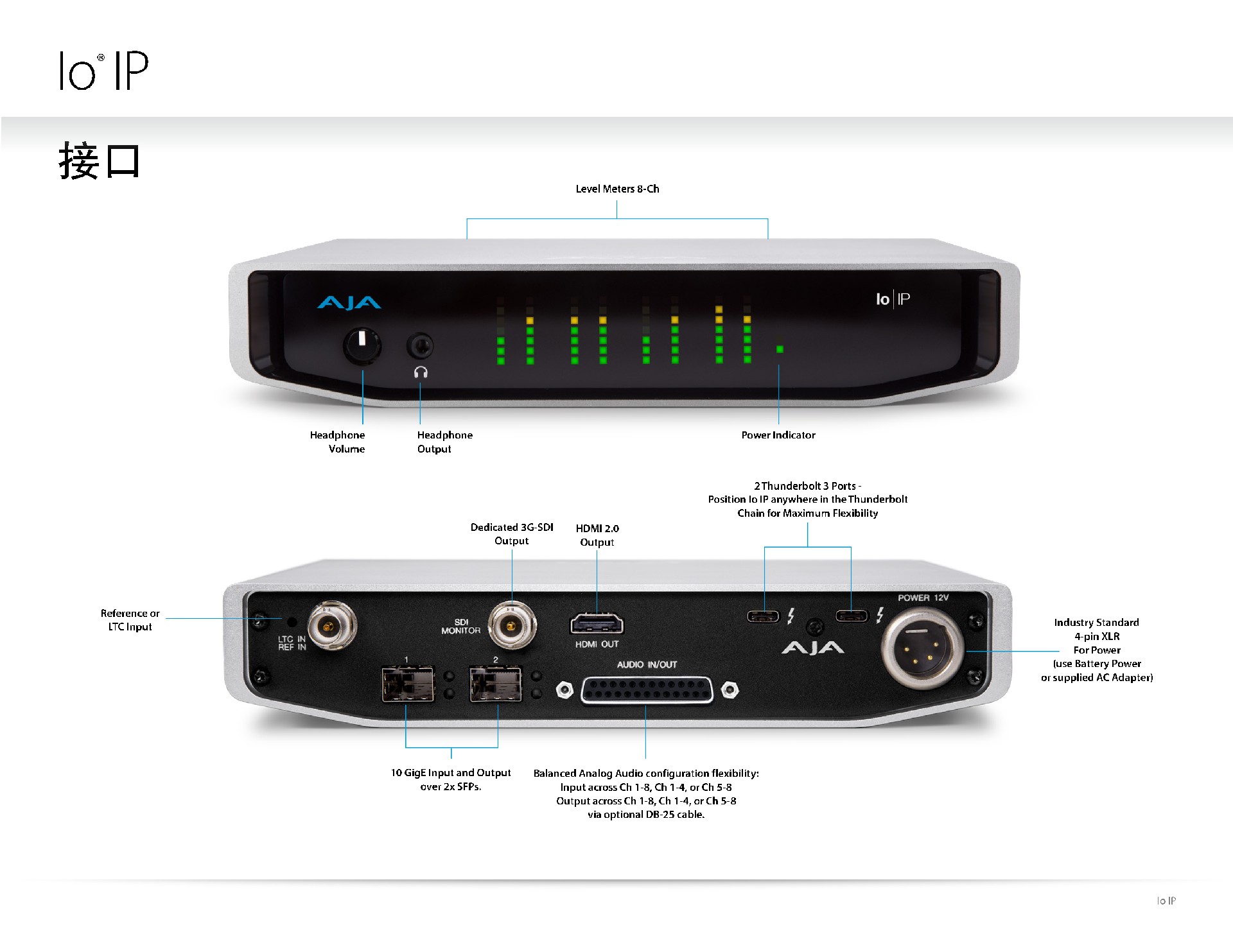 配备Thunderbolt 3端口的Io IP,可以在任何地点通过网络从任何具有Thunderbolt 3端口的Mac或PC上传输2K、HD、或SD视音频。Io IP具备双Thunderbolt 3接口,确保菊花链配置的灵活性。