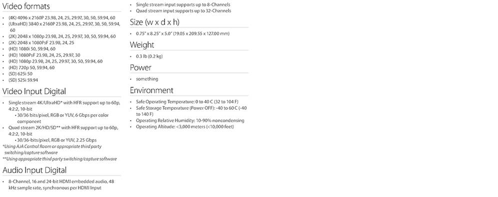 通过HDMI2.0可采集1通道4K/UltraHD 60p信号