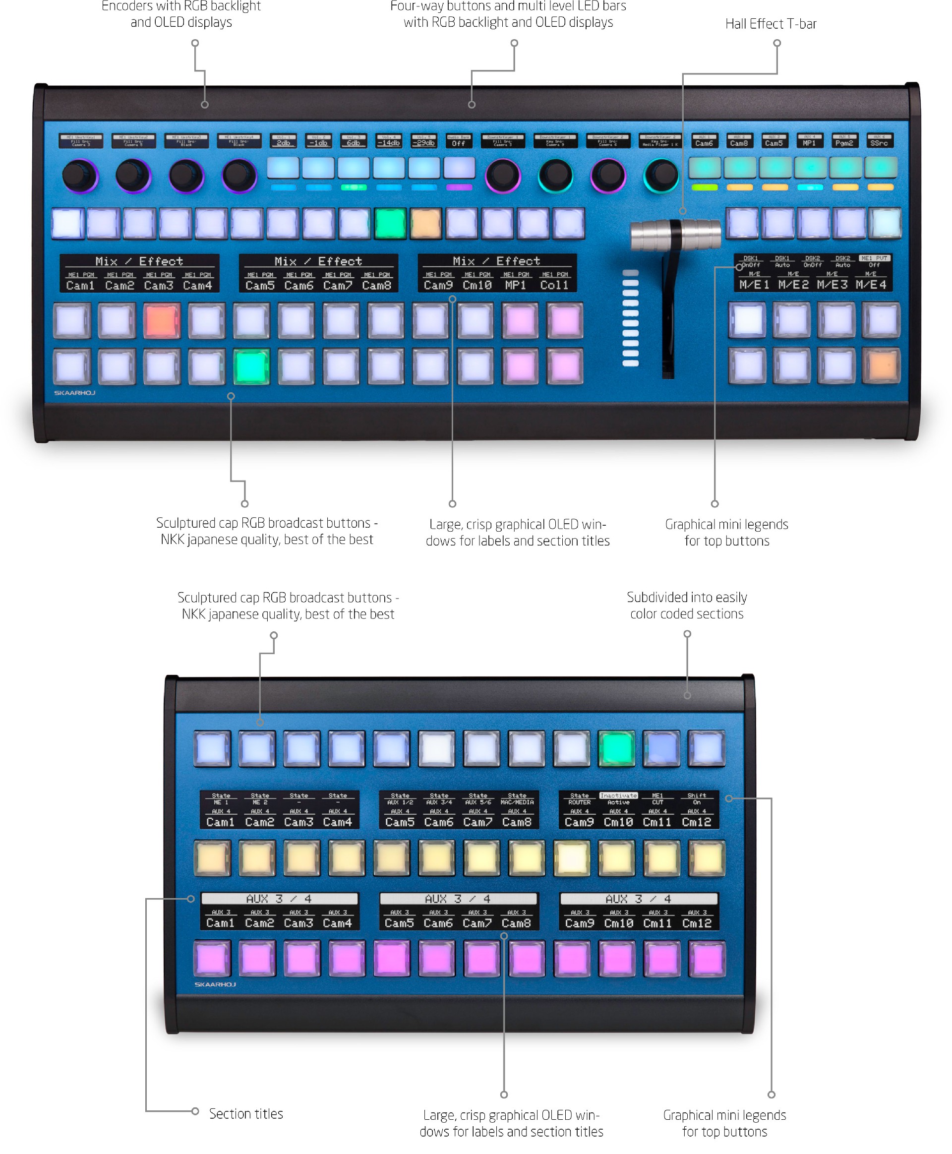 Sculptured cap RGB broadcast buttons - NKK Japanese quality best of the best